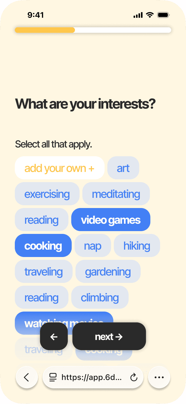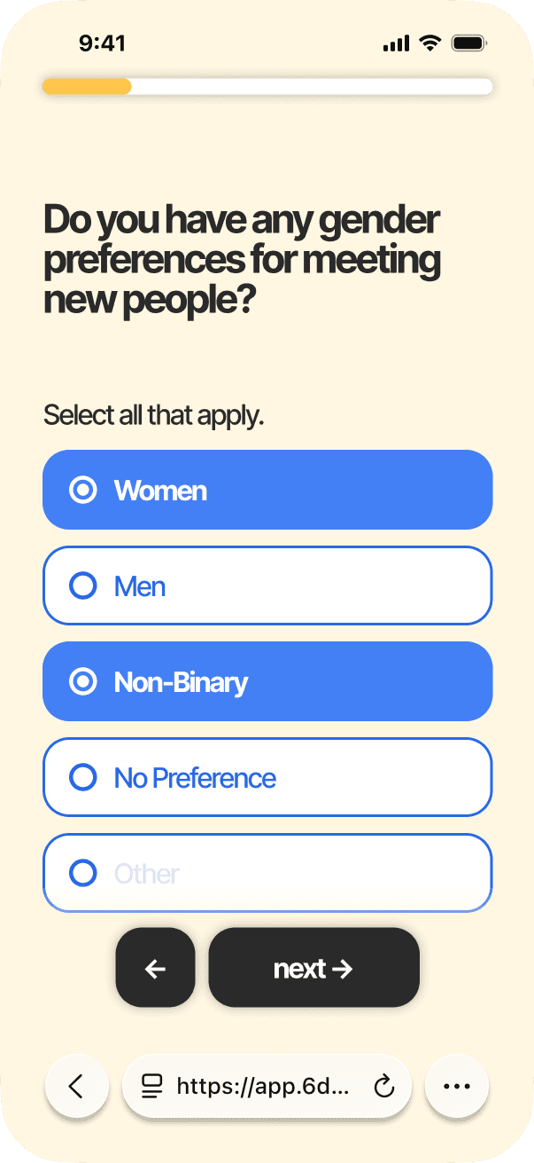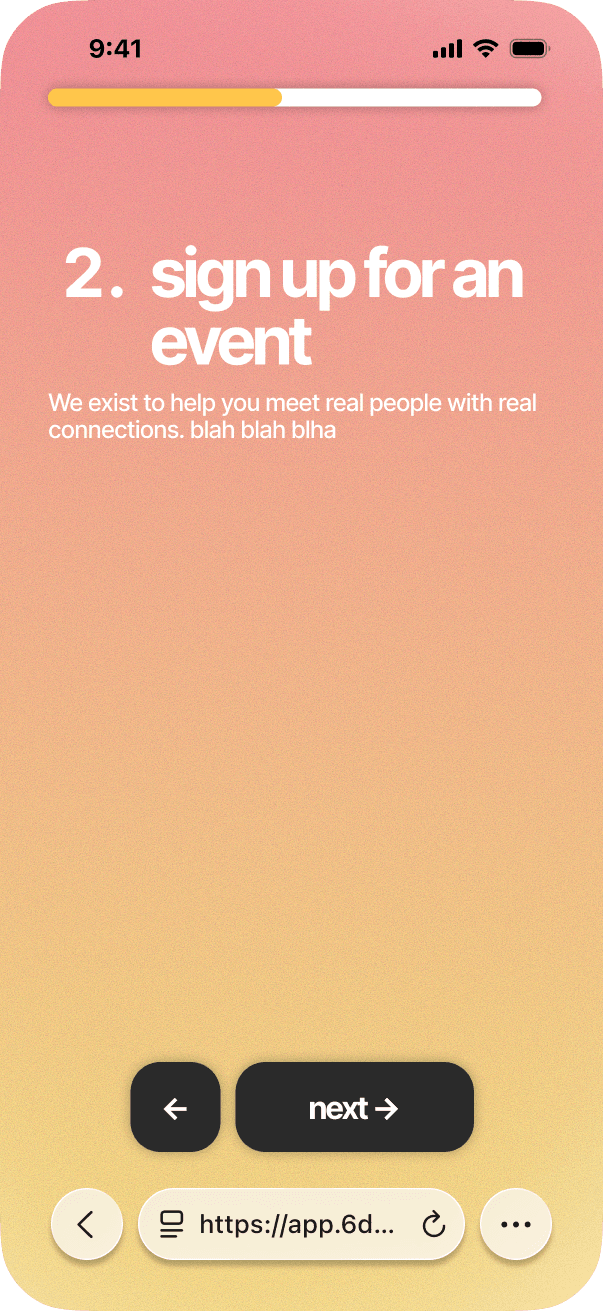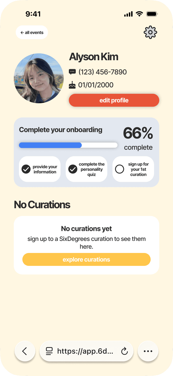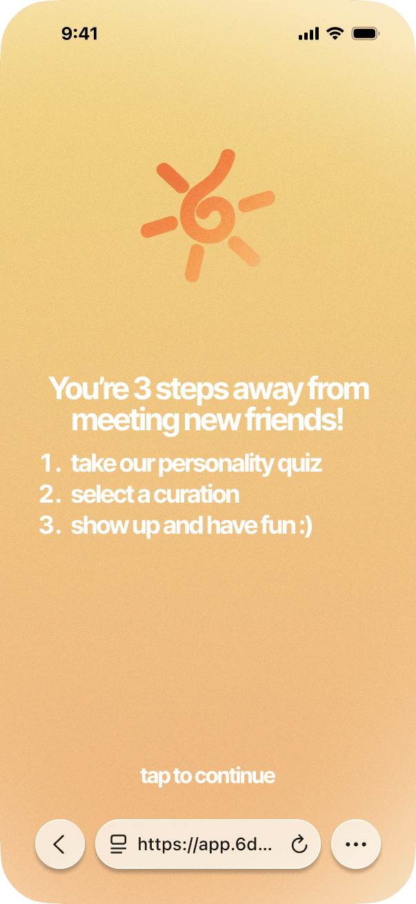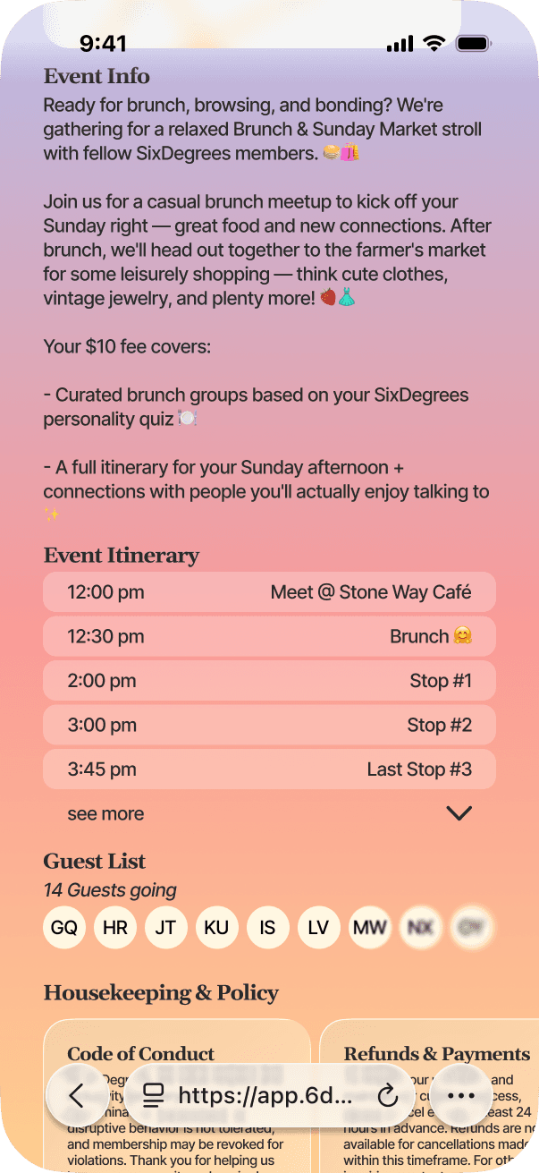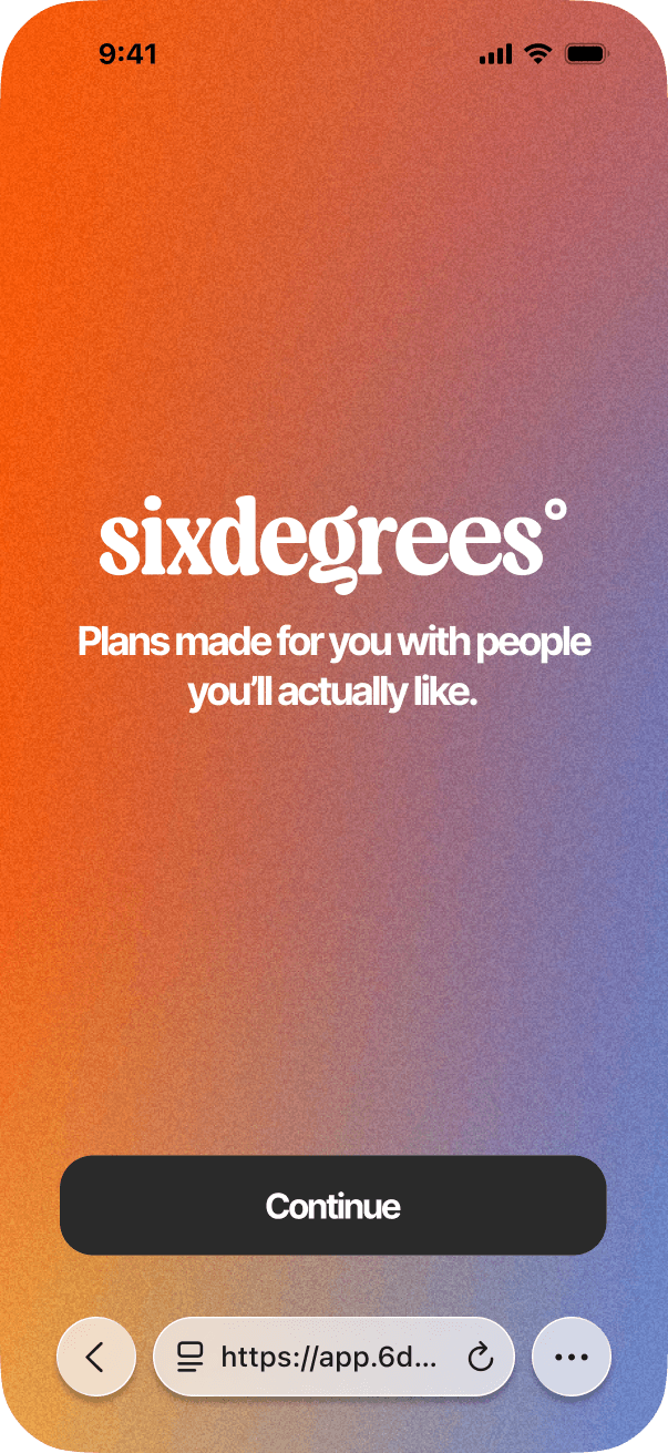SixDegrees exists to take the stress out of meeting new people. We do the planning and matchmaking. All you have to do is sign up.