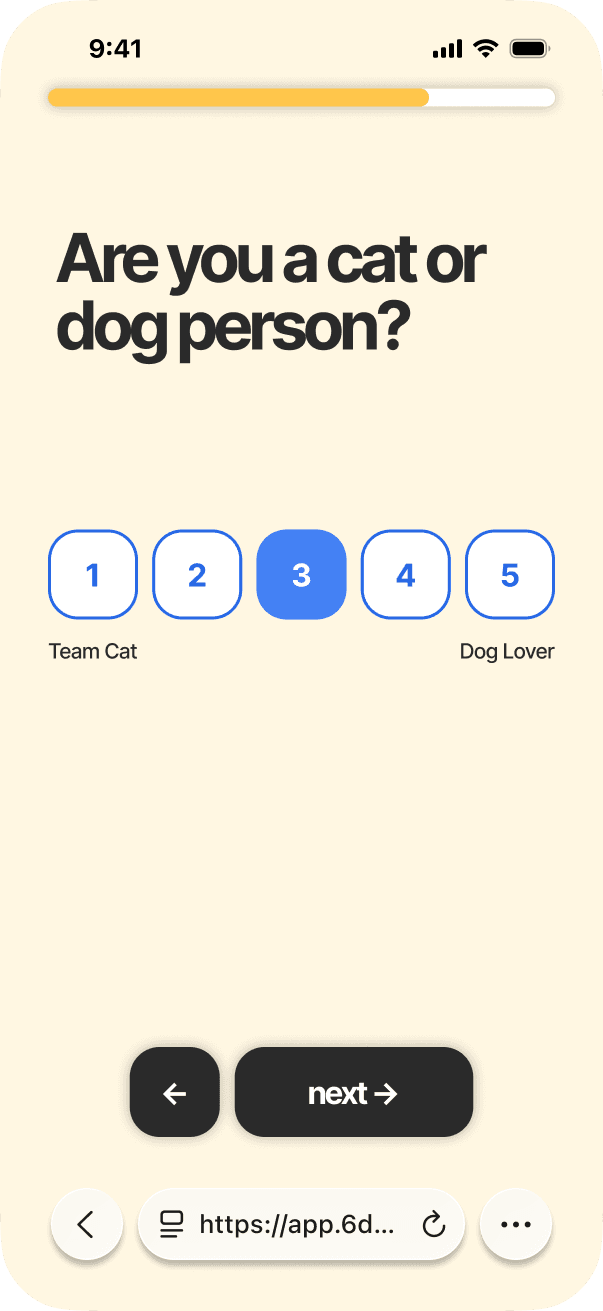We created our own quiz platform within the web app to reduce redirects and keep the formatting more customizable.